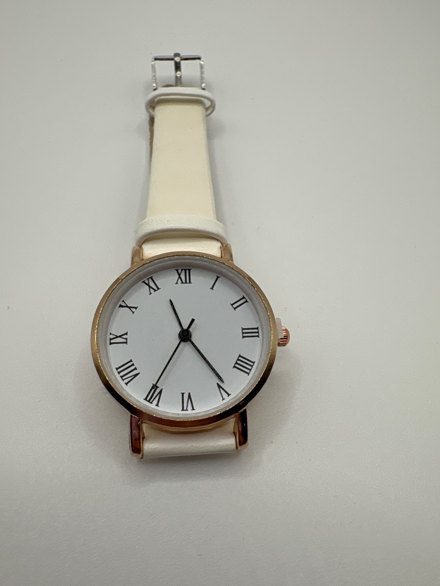 Hodinky dámské bílé, kožený pásek, číselník - římské číslice.