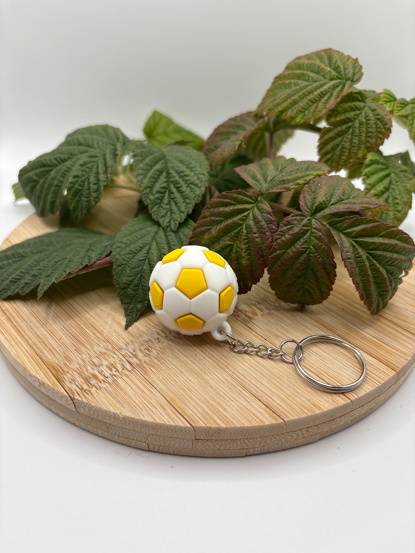 Klíčenka s motivem fotbalového míče, žluto-bílá.