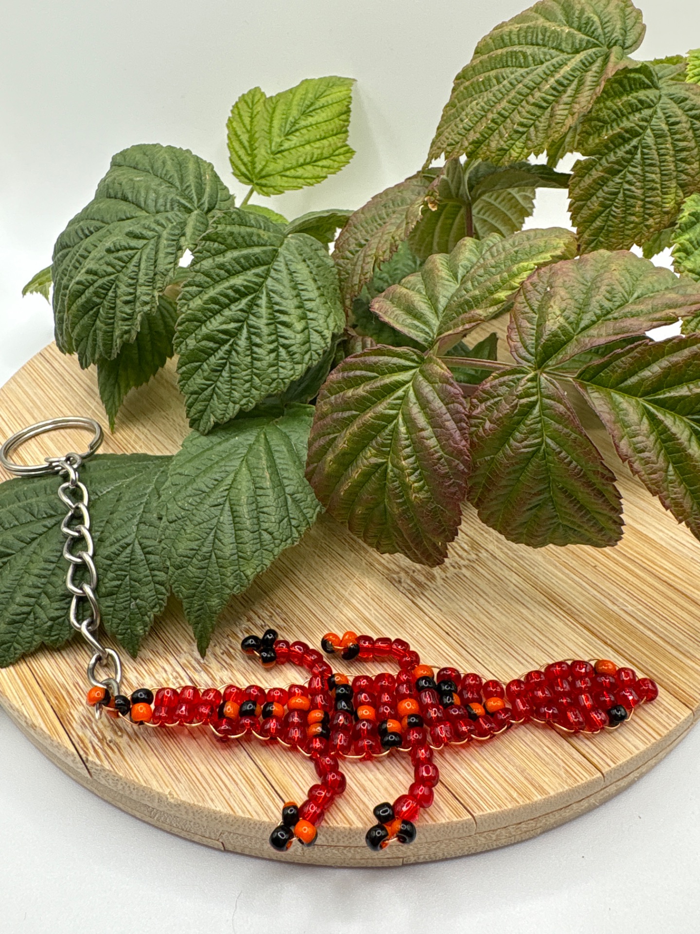 Klíčenka korálková krokodýl, červená barva, materiál měděný drátek, korálky.