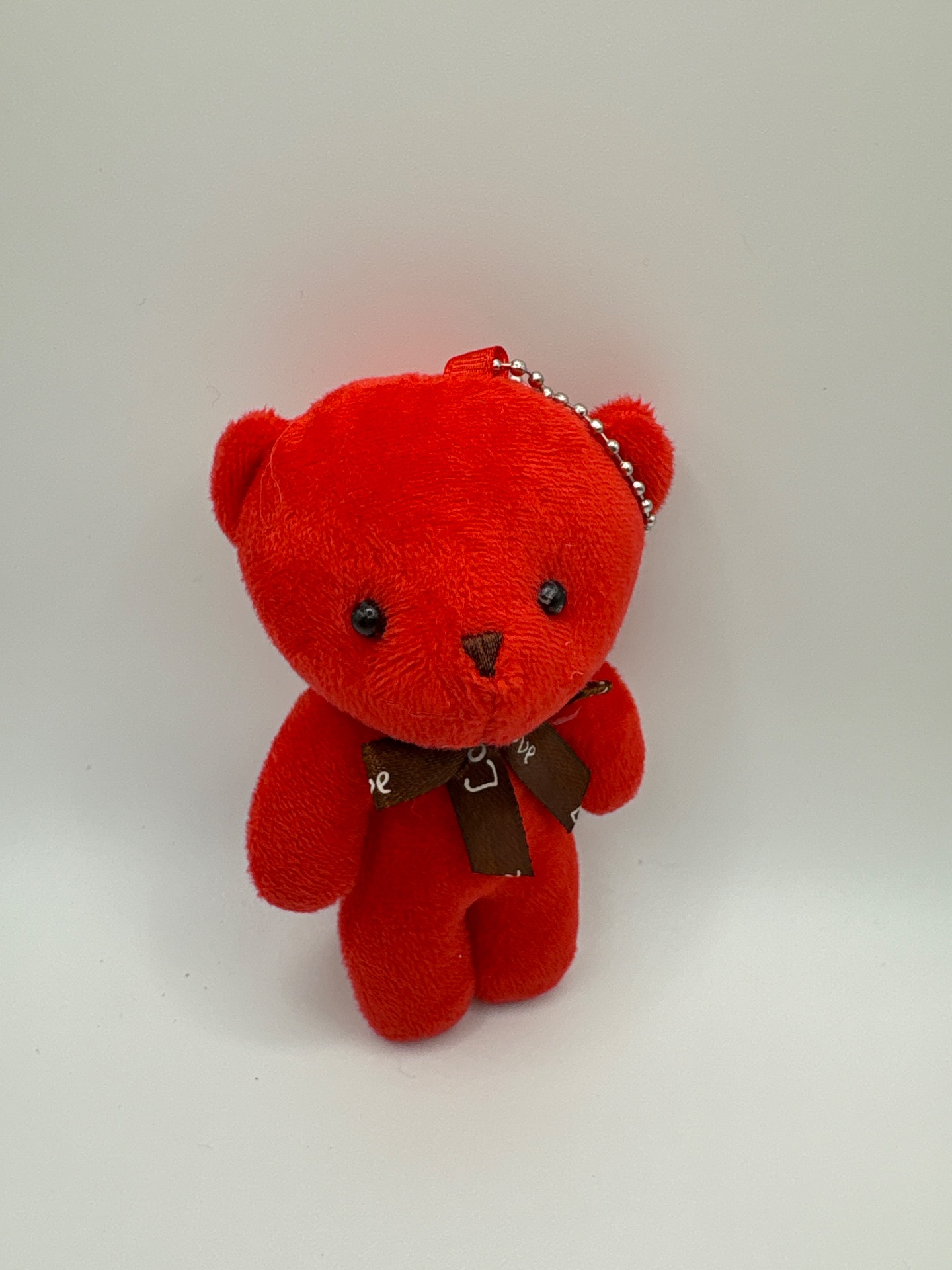 Klíčenka plyšový medvěd červený, stříbrný řetízek.