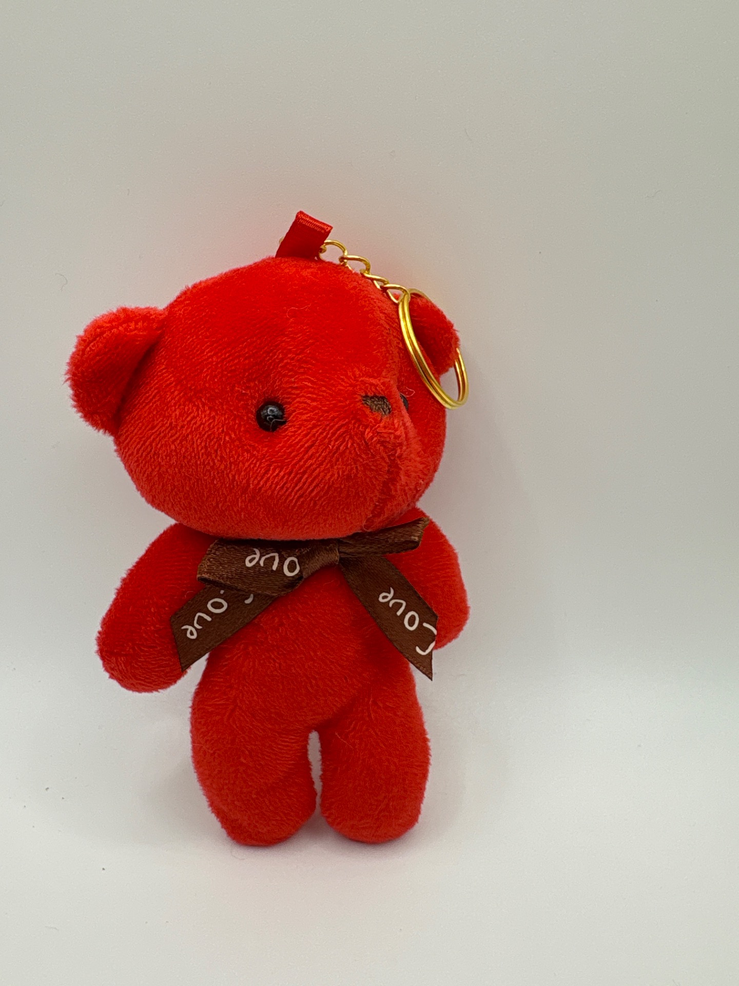 Klíčenka plyšový medvěd červený, zlatý řetízek.