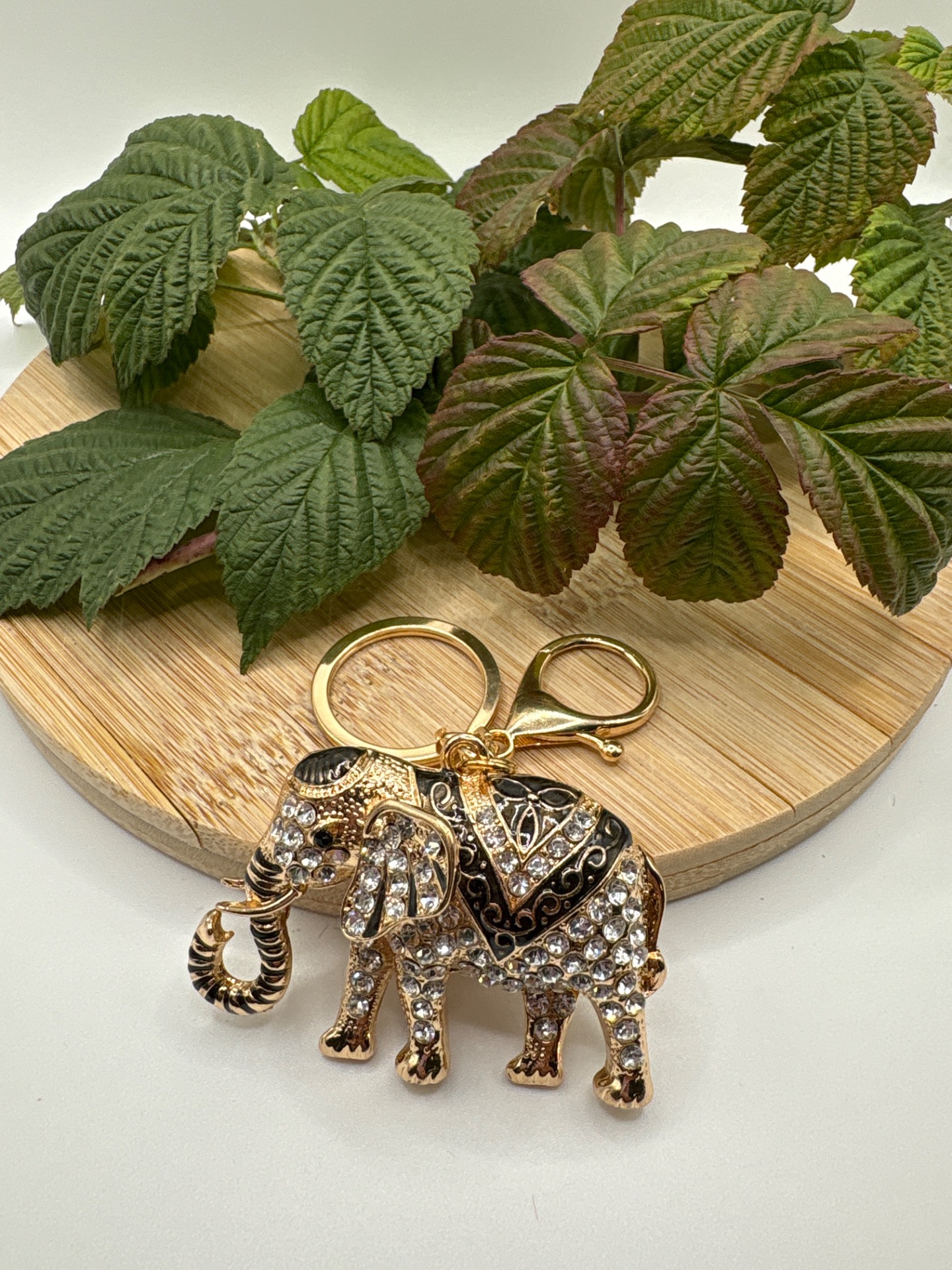 Klíčenka s motivem slona, ve zlaté barvě s imitací zirkonu.