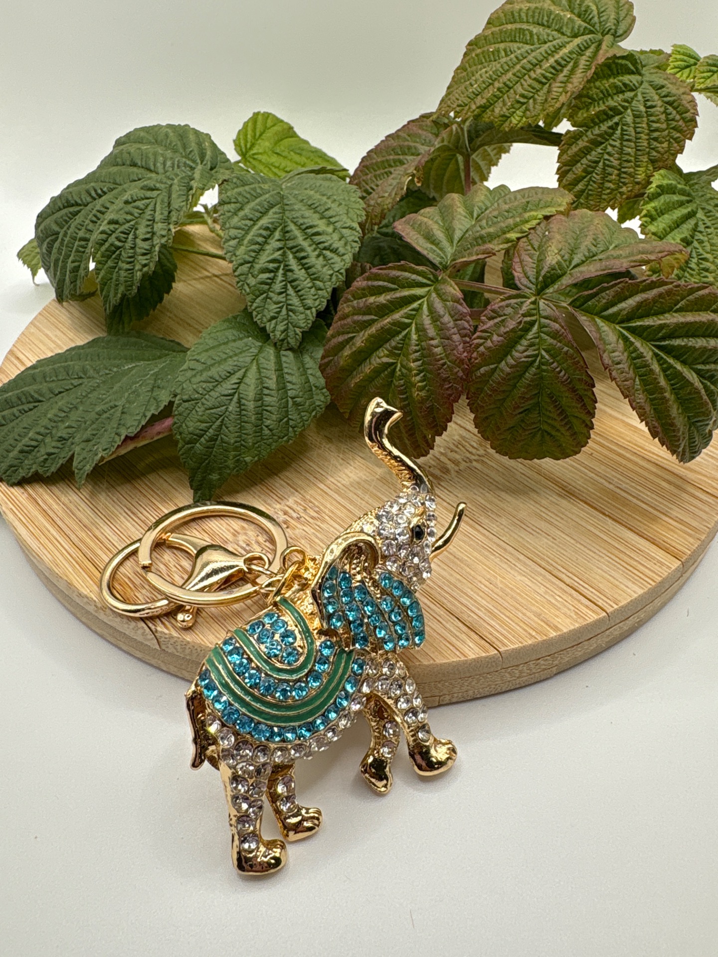 Klíčenka s motivem slona, ve zlaté barvě s imitací zirkonu.
