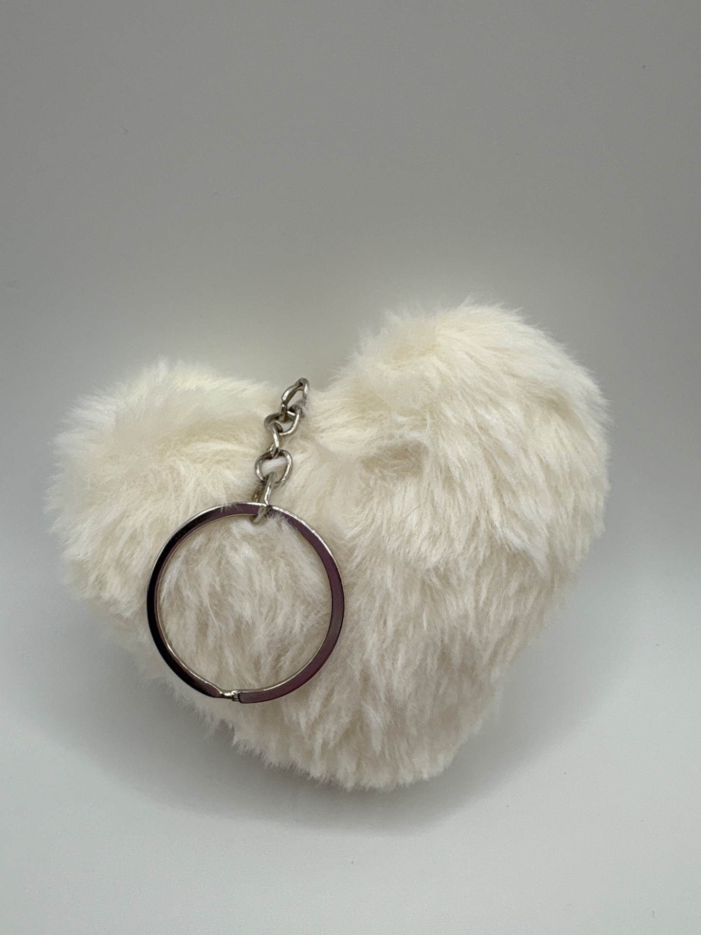 Klíčenka plyšové srdce bílé, stříbrný řetízek.