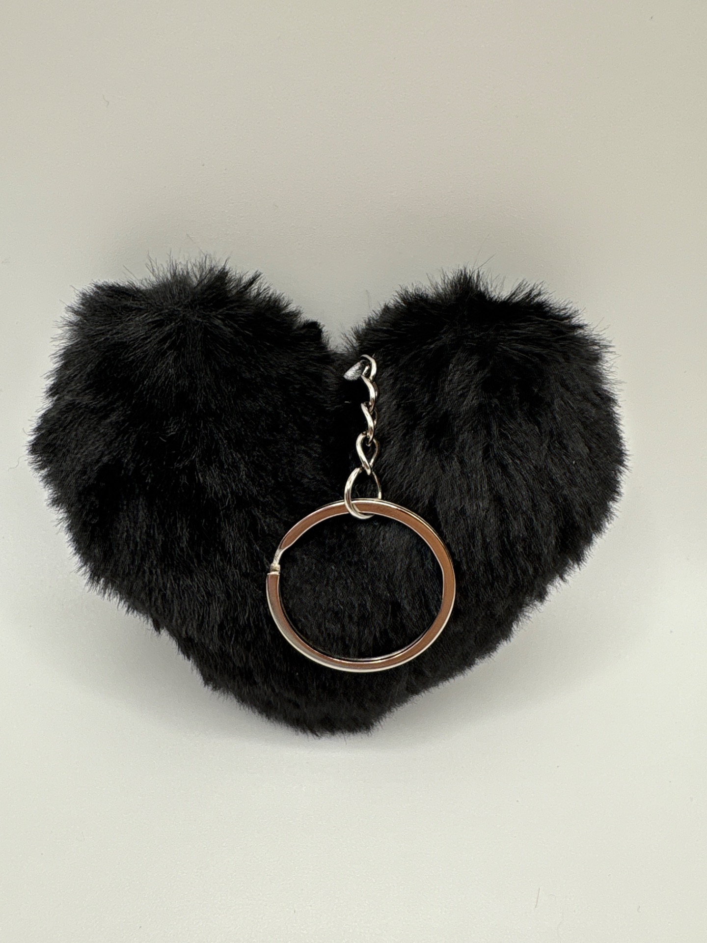 Klíčenka plyšové srdce černé, stříbrný řetízek.