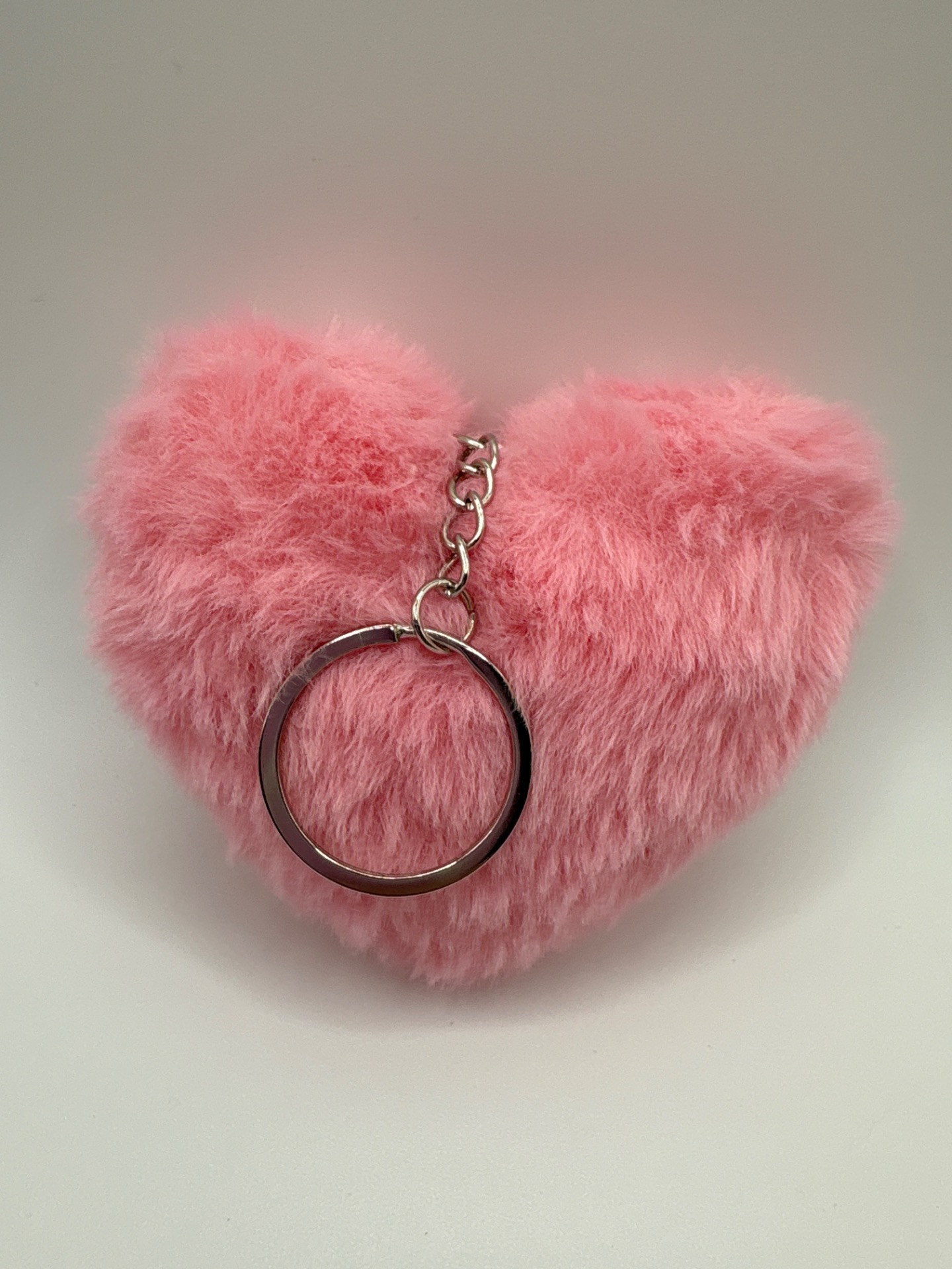 Klíčenka plyšové srdce růžové, stříbrný řetízek.