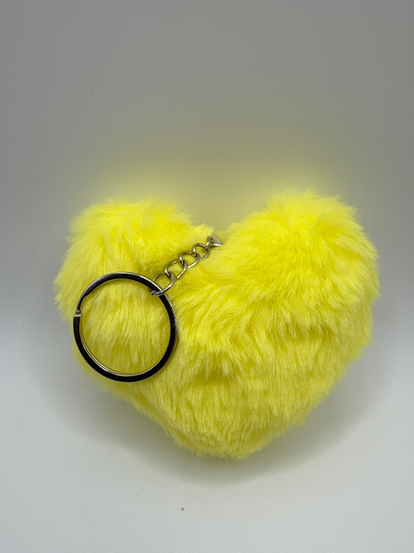 Klíčenka plyšové srdce žluté, stříbrný řetízek.