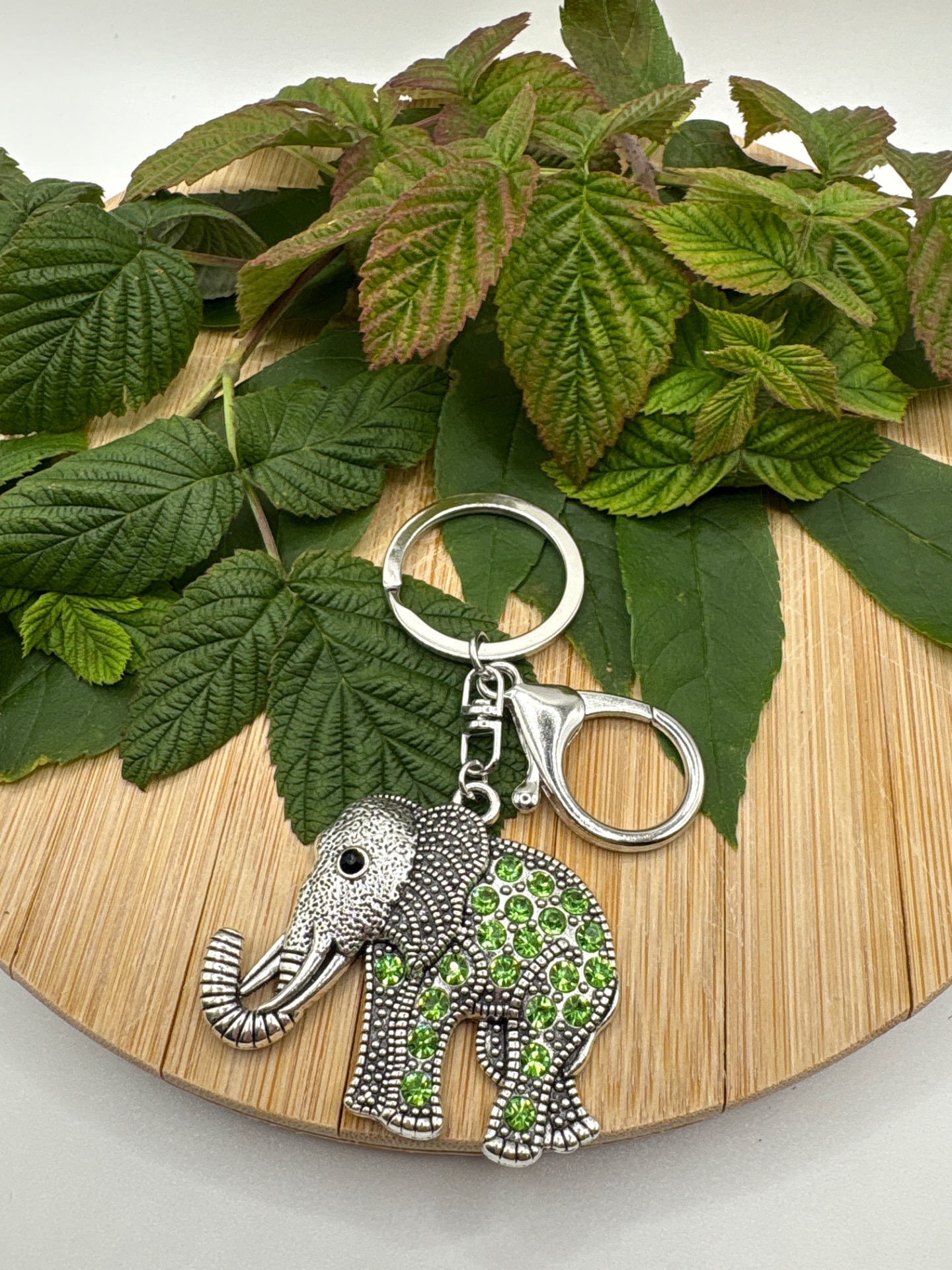Klíčenka s motivem slona, ve stříbrné barvě, imitace Swarovski