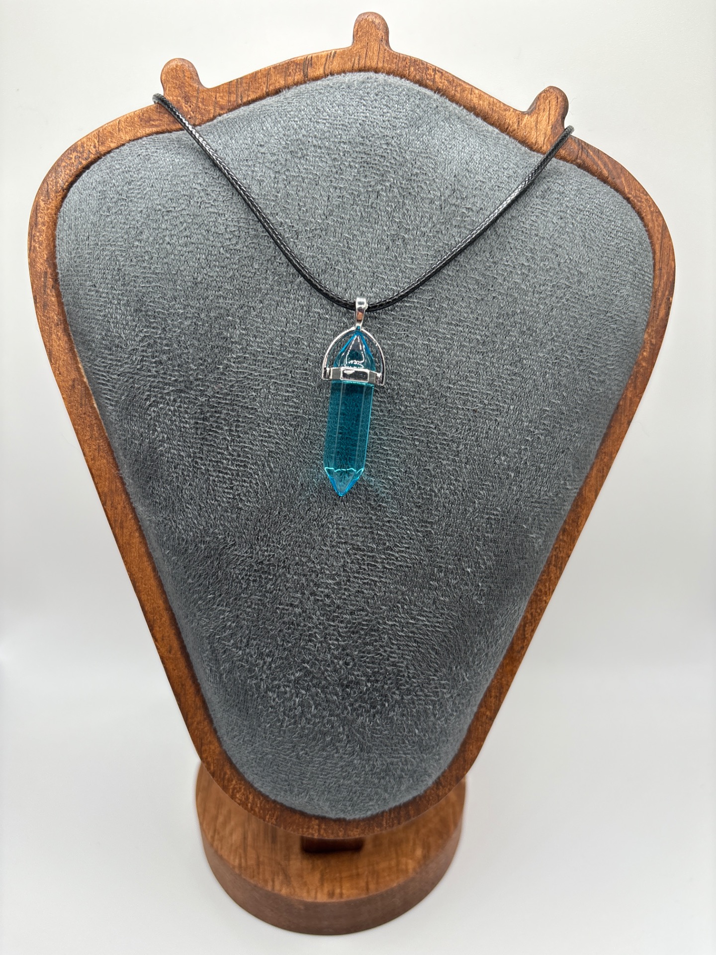 Náhrdelník ve tvaru hexagonu, světle modrý.