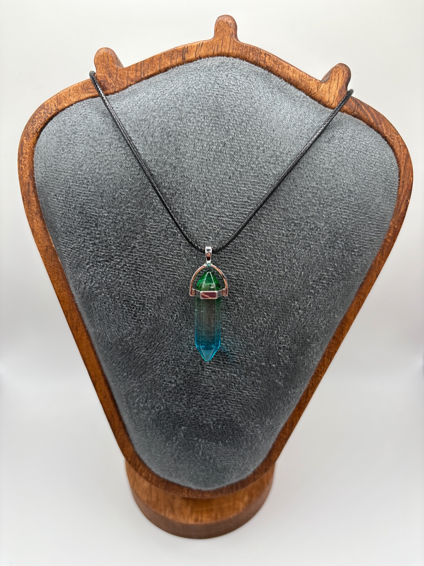 Náhrdelník ve tvaru hexagonu, modrozelený.