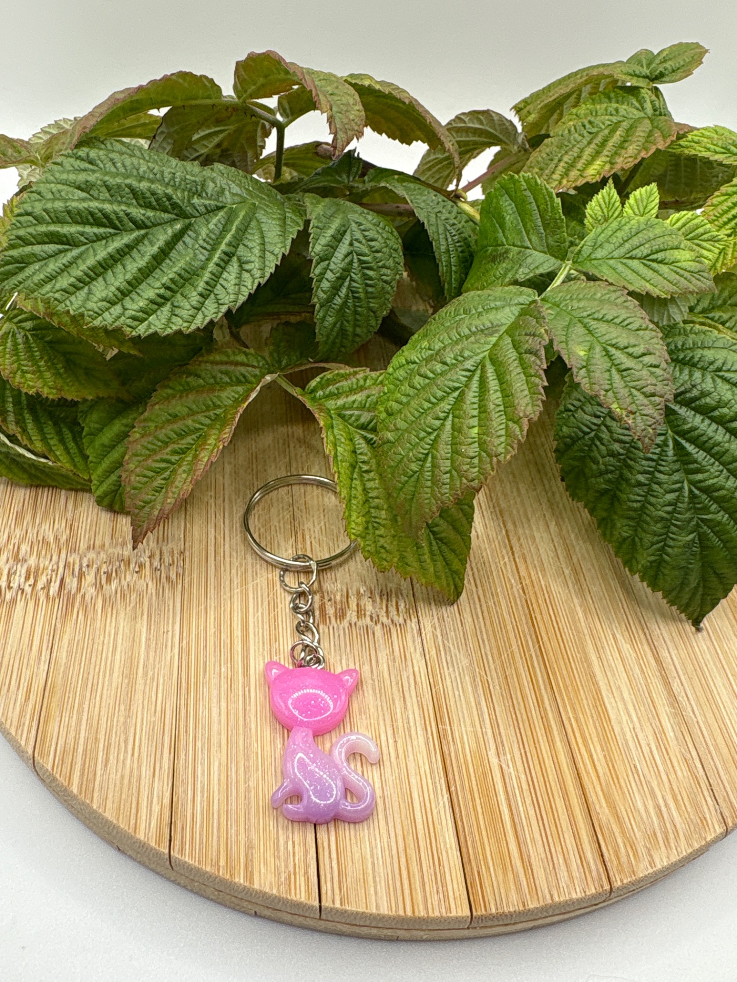 Přívěsek s motivem kočky, růžovo-fialová barva.